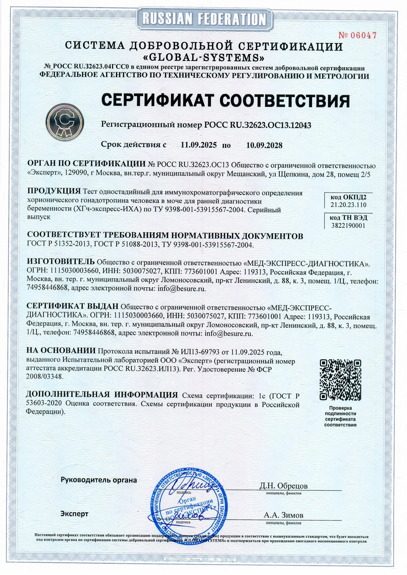 Тест ХГч-экспресс-ИХА предназначен для одностадийного быстрого качественного in vitro определения хорионического гонадотропина человека в моче методом иммунохроматографического анализа для выявления беременности на ранних сроках. Тест может применяться как в акушерско-гинекологической практике, так и в домашних условиях для самоконтроля