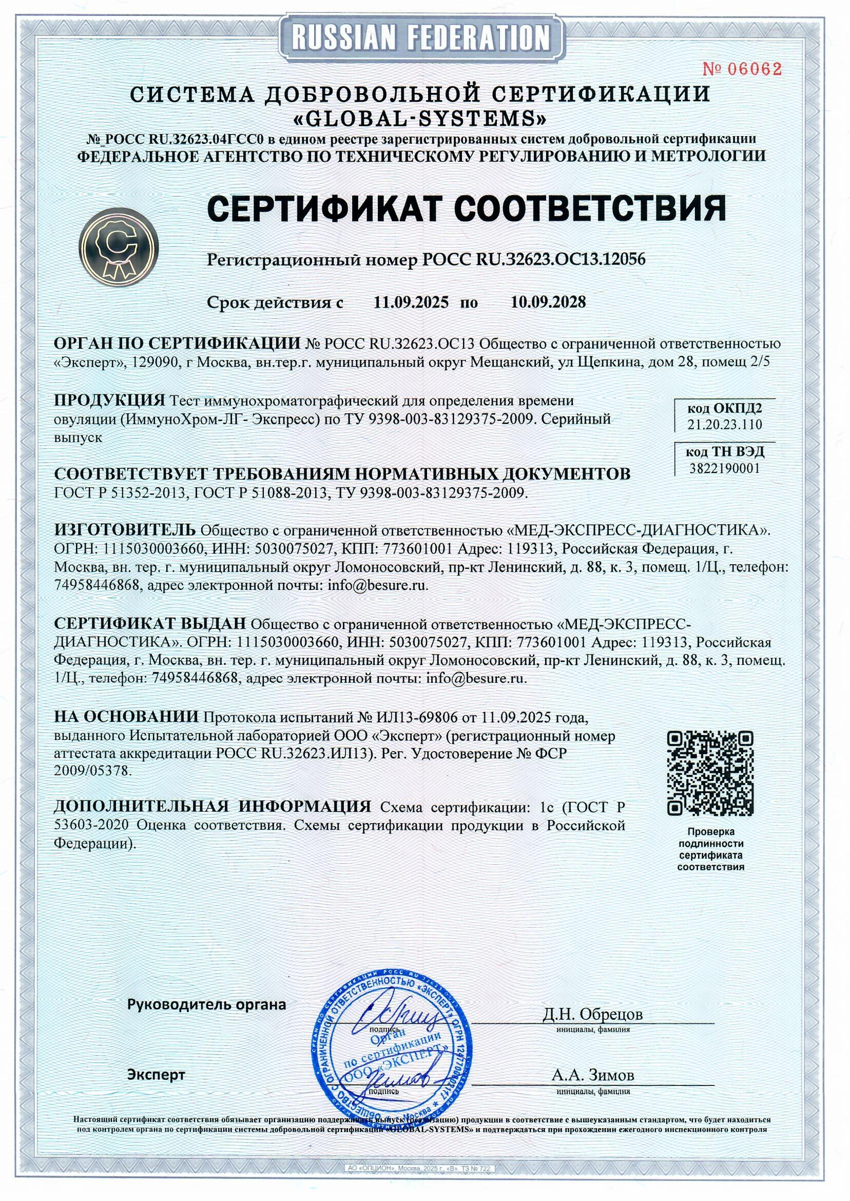 предназначен для одноэтапного быстрого качественного (полуколичественного) in vitro выявления овуляторного пика концентрации лютеинизирующего гормона (ЛГ) в моче методом иммунохроматографического анализа с целью определения времени овуляции у женщины.