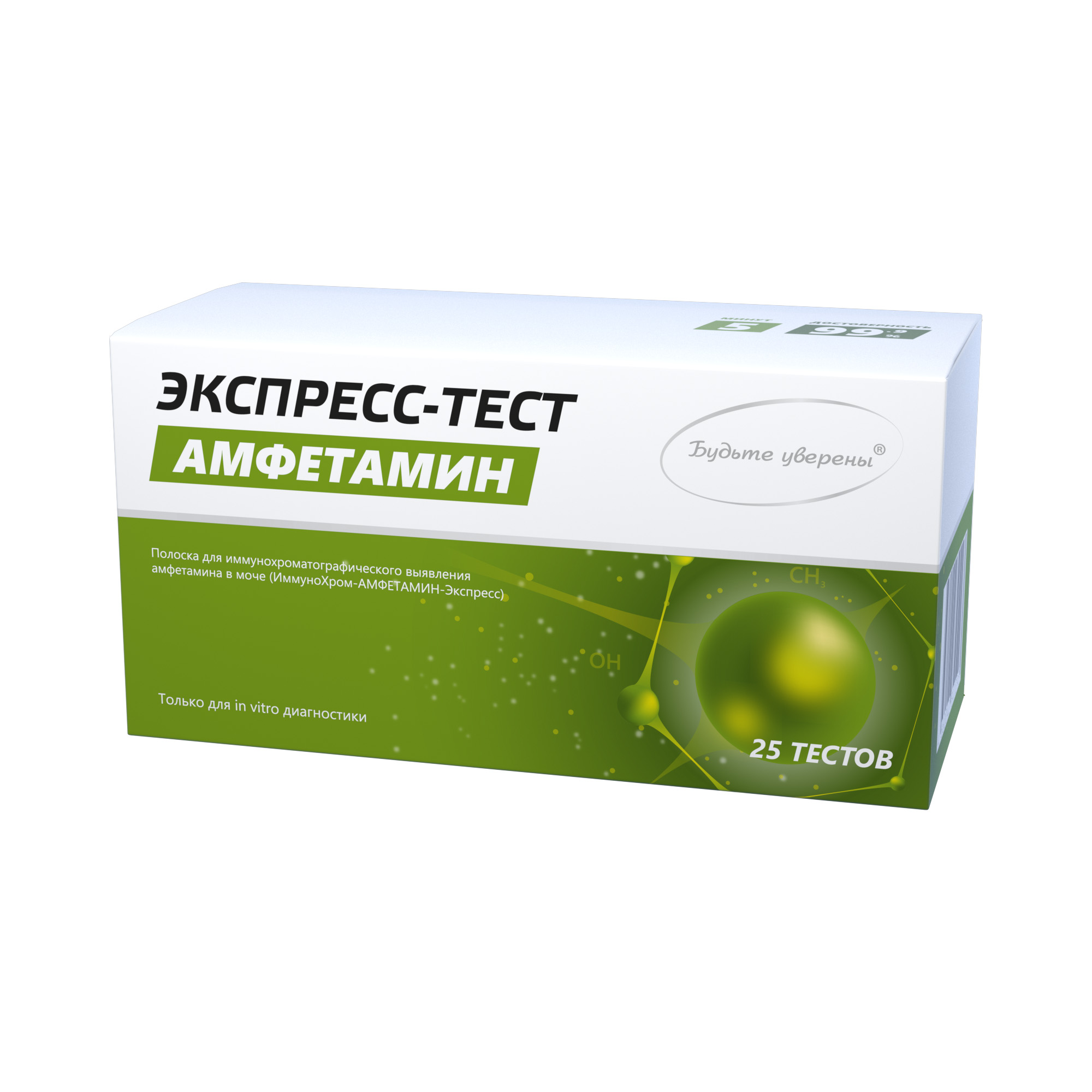 Определение основано на принципе конкурентного иммунохроматографического анализа, при котором амфетамин (или его метаболиты), находящийся в анализируемом образце, конкурирует с d-амфетамином, иммобилизованным на мембране полоски, за возможность связывания со специфическими моноклональными антителами к амфетамину, конъюгированными с коллоидным золотом, препятствуя образованию розово-фиолетовой линии в нижней части тестовой зоны.