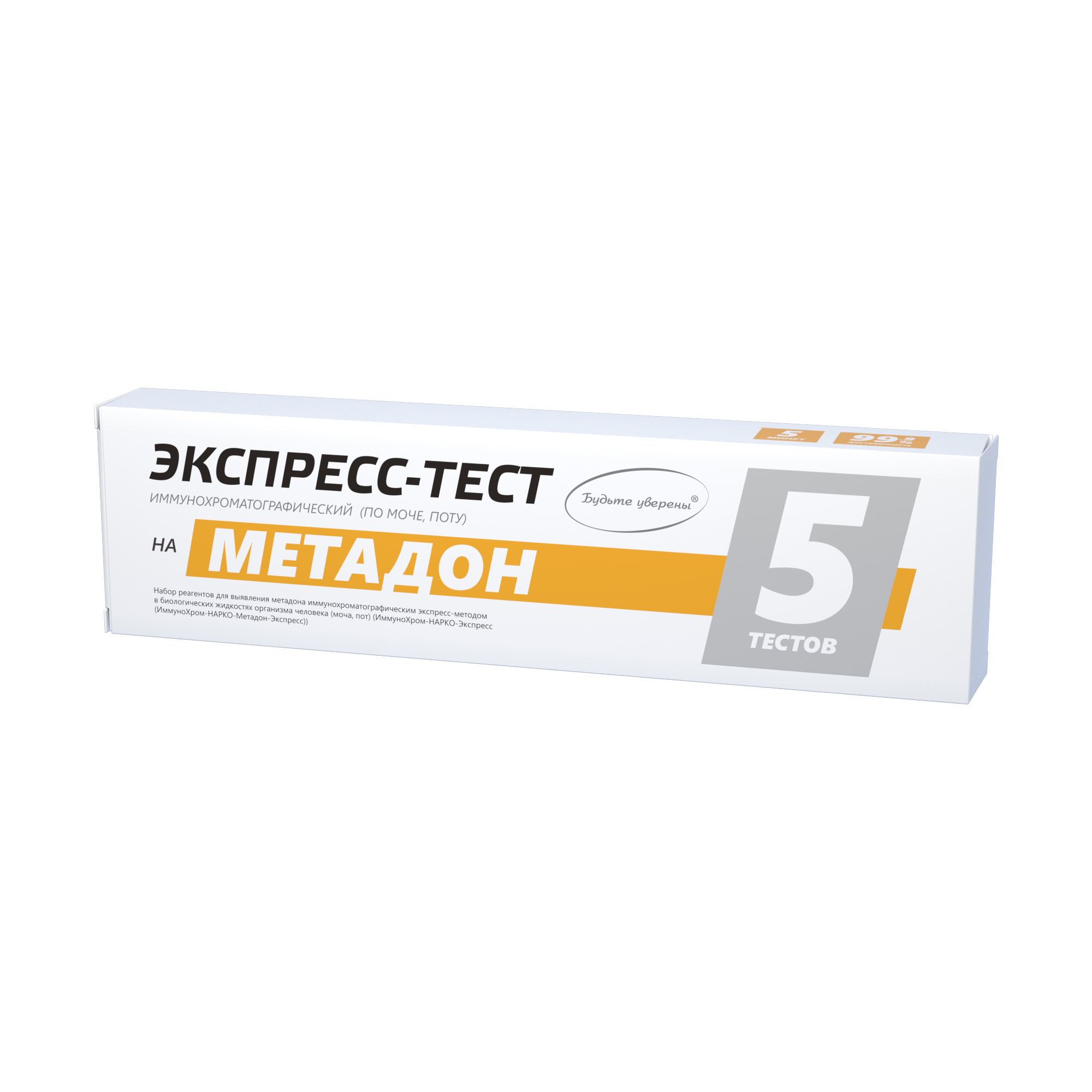 Набор экспресс-тестов для выявления метадона в порошках, таблетках, смывах с рук, в растворах и др. объектах исследования.